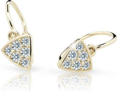 Zlaté náušničky ve tvaru trojúhelníčků, vyrobené z žlutého zlata ryzosti 585/1000 s kvalitními barevnými zirkony se stanou dokonalou ozdobou každé malé holčičky. Do nejmenšího detailu propracované šperky vyrobené zkušenými zlatníky v České Republice jsou dodávány v originální designové dárkové krabičce. Náušničky CUTIE díky bezpečnému zapínání skvěle drží i v drobných ouškách děvčátek – miminek. Náušničky CUTIE ...protože každá holčička si zaslouží být princeznou!