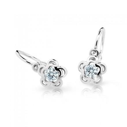 Roztomilé dětské náušnice ve tvaru kytičky vyrobené ze 14 karátového bílého zlata, osázené průzračně bílými kamínky, rozzáří tvářičku každé malé slečny. Zapínání brizura je ideální volbou pro miminka.