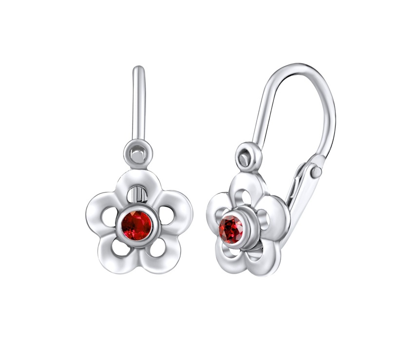 Náušničky pro děti ze stříbra se zirkonem v barvě červené.