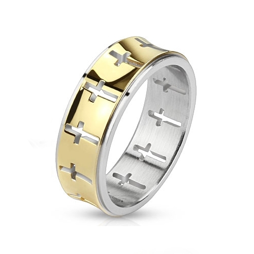 Prsten z chirurgické oceli s křížkem