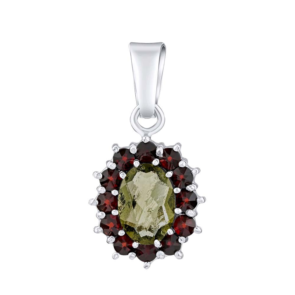 SILVEGO Stříbrný přívěsek s přírodním vltavínem a granáty SILVEGOB180002VG