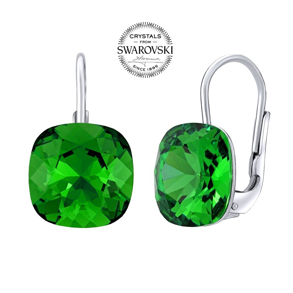 SILVEGO stříbrné náušnice se Swarovski® Crystals square 10 mm zelené.