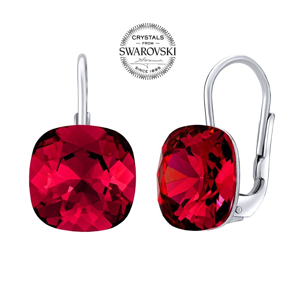 SILVEGO stříbrné náušnice se Swarovski® Crystals square 10 mm červené.
