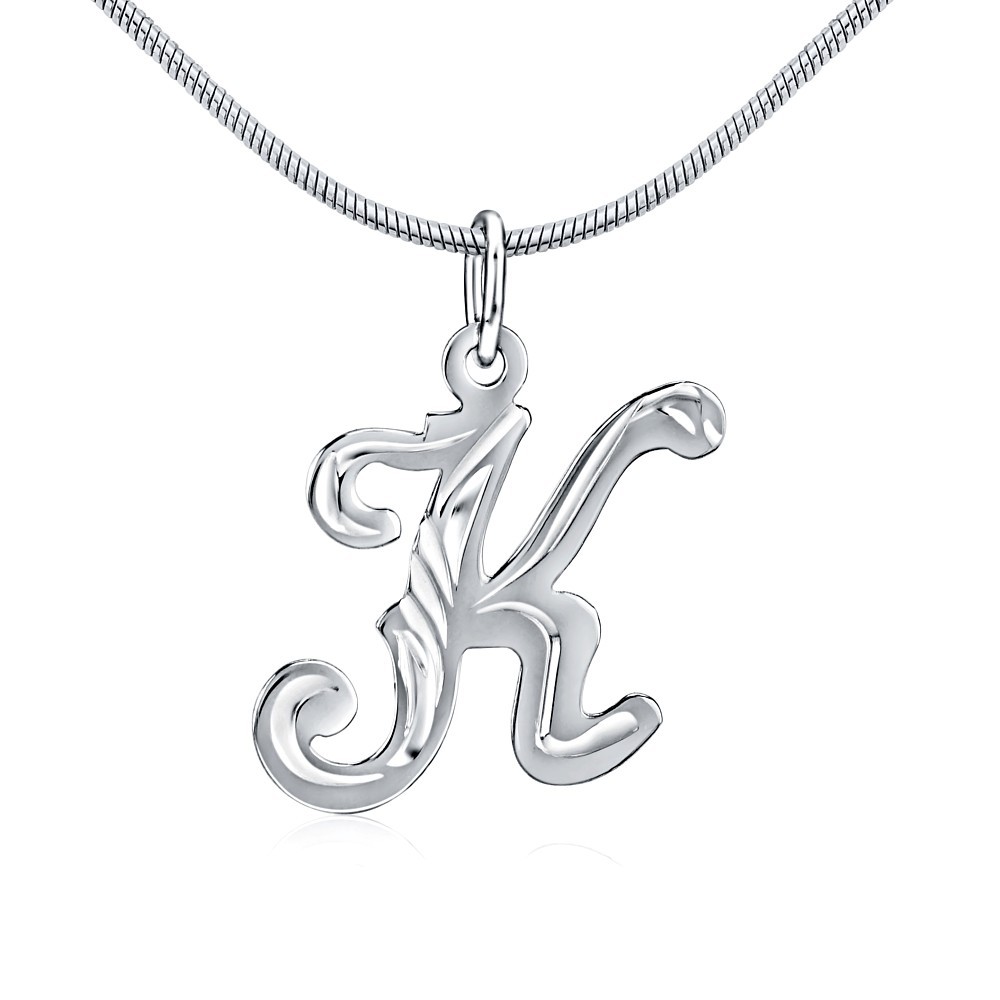 Stříbrný jemný přívěsek písmeno K s ozdobným rytím.