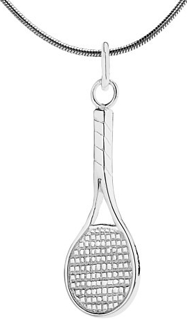 Celostříbrný lesklý přívěsek z rhodiovaného stříbra má hezké zpracování ve tvaru tenisové rakety.