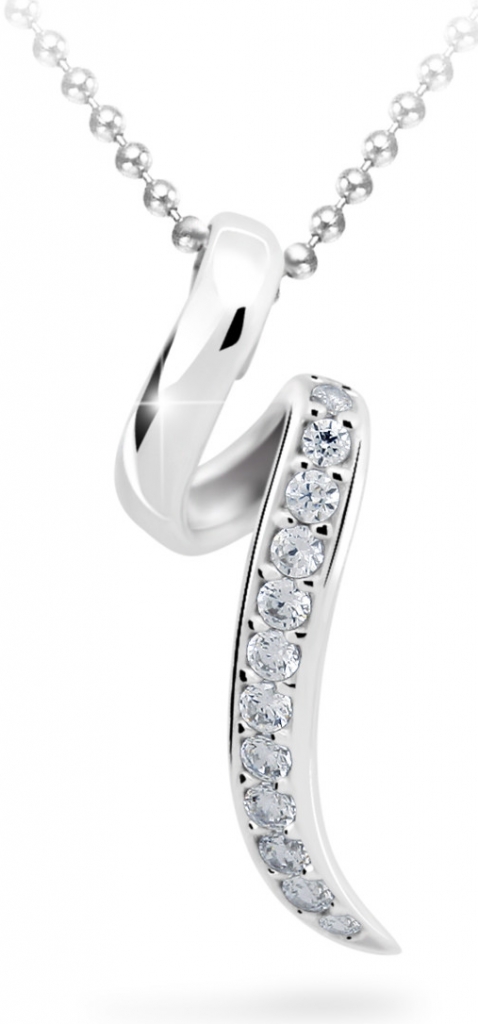 Luxusní přívěsek z bílého 14 karátového zlata ozdobený 12 zářivými brilianty kulatého brusu o celkové váze 0.131 ct. Přívěsek má lesklý, sněhově bílý povrch. Šperk je uložen v luxusní dárkové krabičce spolu s certifikátem pravosti.