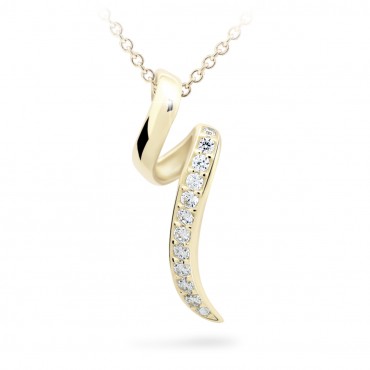Krásný přívěsek ze žlutého 14 karátového zlata zvýrazněný 12 třpytivými diamanty kulatého brusu o celkové váze 0.131 ct. Přívěsek má lesklý povrch. Šperk je uložen v luxusní dárkové krabičce spolu s certifikátem pravosti.