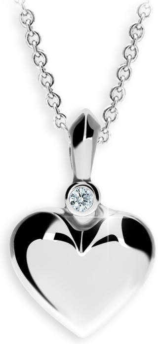 Luxusní přívěsek ve tvaru srdíčka ze žlutého 14 karátového zlata zvýrazněný krásným briliantem 0.015 ct kulatého brusu. Přívěsek má lesklý povrch. Šperk je uložen v luxusní dárkové krabičce spolu s certifikátem pravosti.