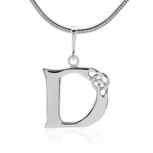 Stříbrný přívěsek s keltským vzorem ve tvaru písmena D.