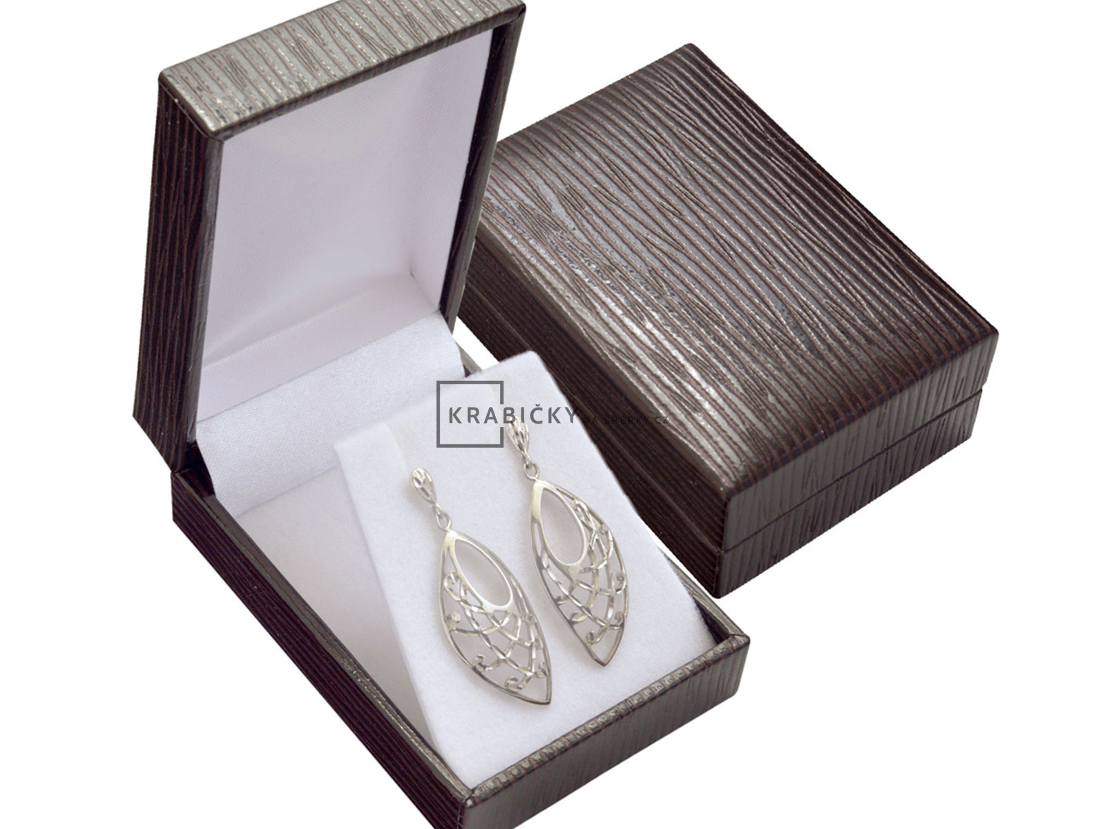 POPIS PRODUKTU - Hnědá koženková krabička s bílým vnitřkem na náušnice DH-3/NA/A21.