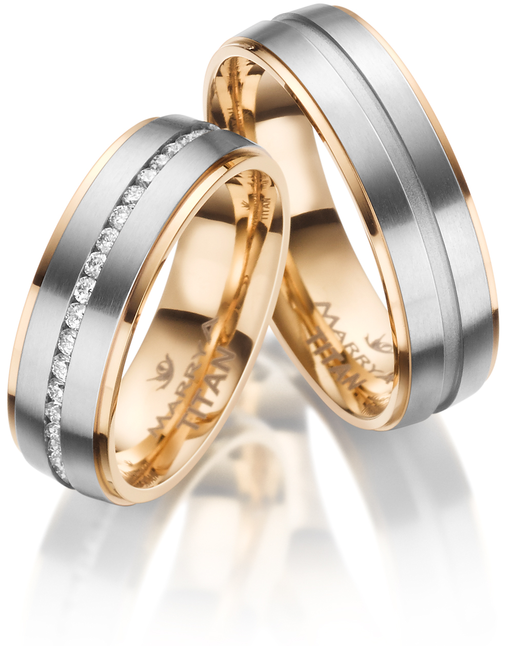 Snubní prsteny z titanu půlkulatého profilu s lesklou-Matnou povrchovou úpravou. V dámském prstenu je vsazen zirkon.