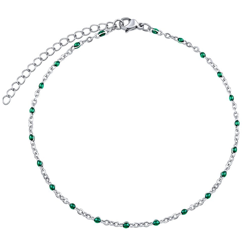 Ocelový řetízek na nohu tmavě zelený