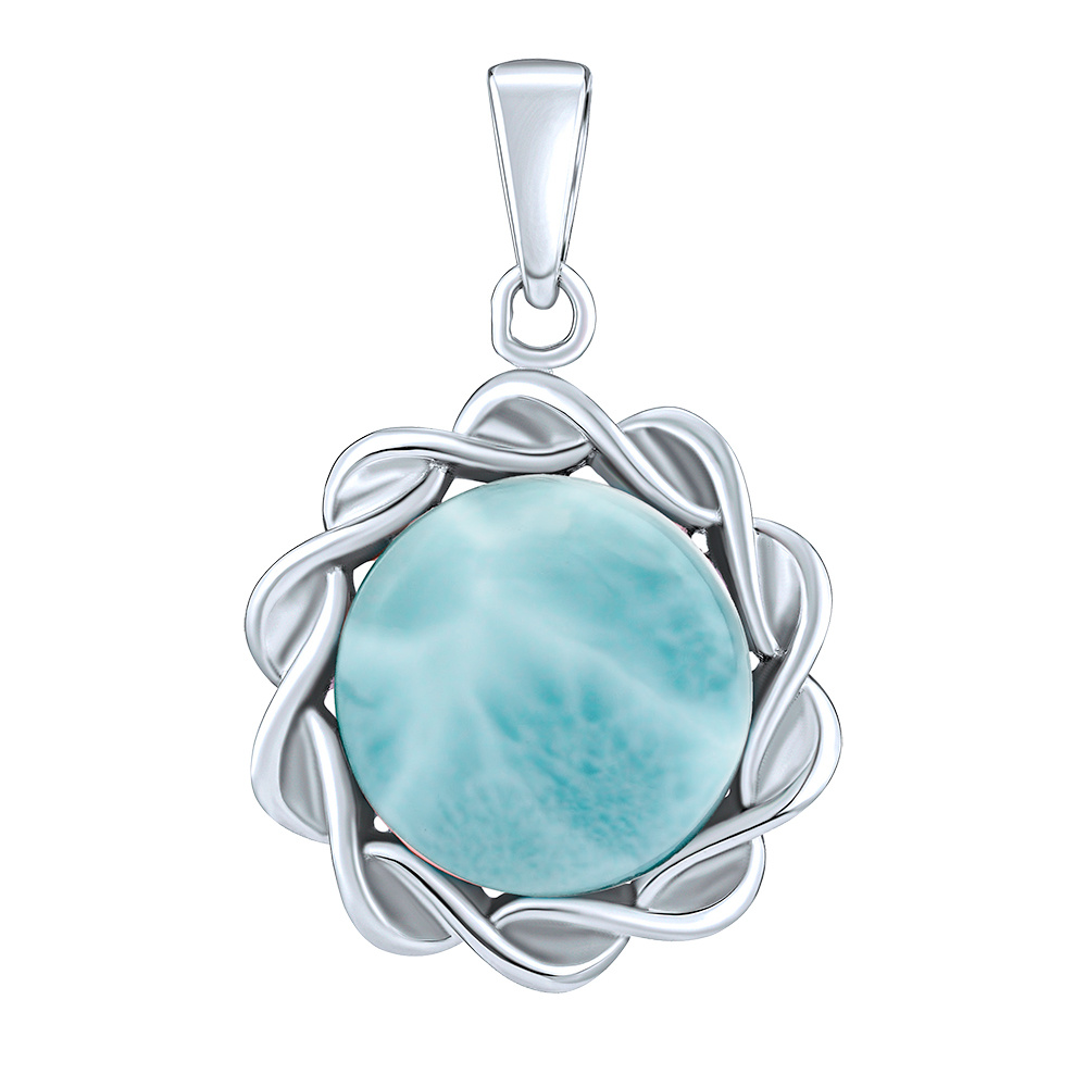 Použitý kámen je pravý přírodní larimar velikosti 12 mm. Rozměr přívěsku včetně poutka: 24 x 18 mm.