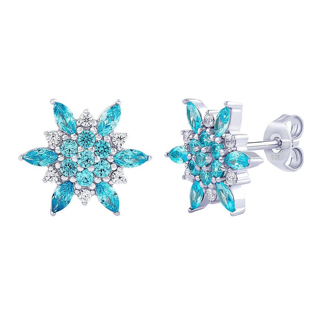 Dámské stříbrné náušnice vločky Alesia s čirými a modrými SILVEGO® Brilliance Zirconia.