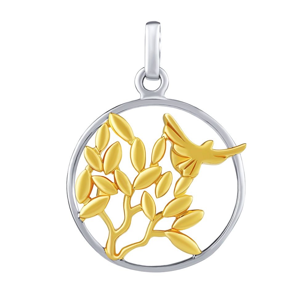 Stříbrný pozlacený přívěsek Dove s holubicí míru a stromem.