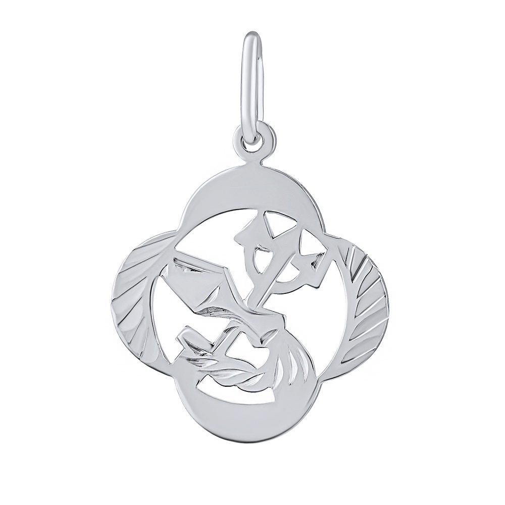 Stříbrný přívěsek znamení zvěrokruhu Vodnář ve tvaru čtyřlístku - ručně rytý.