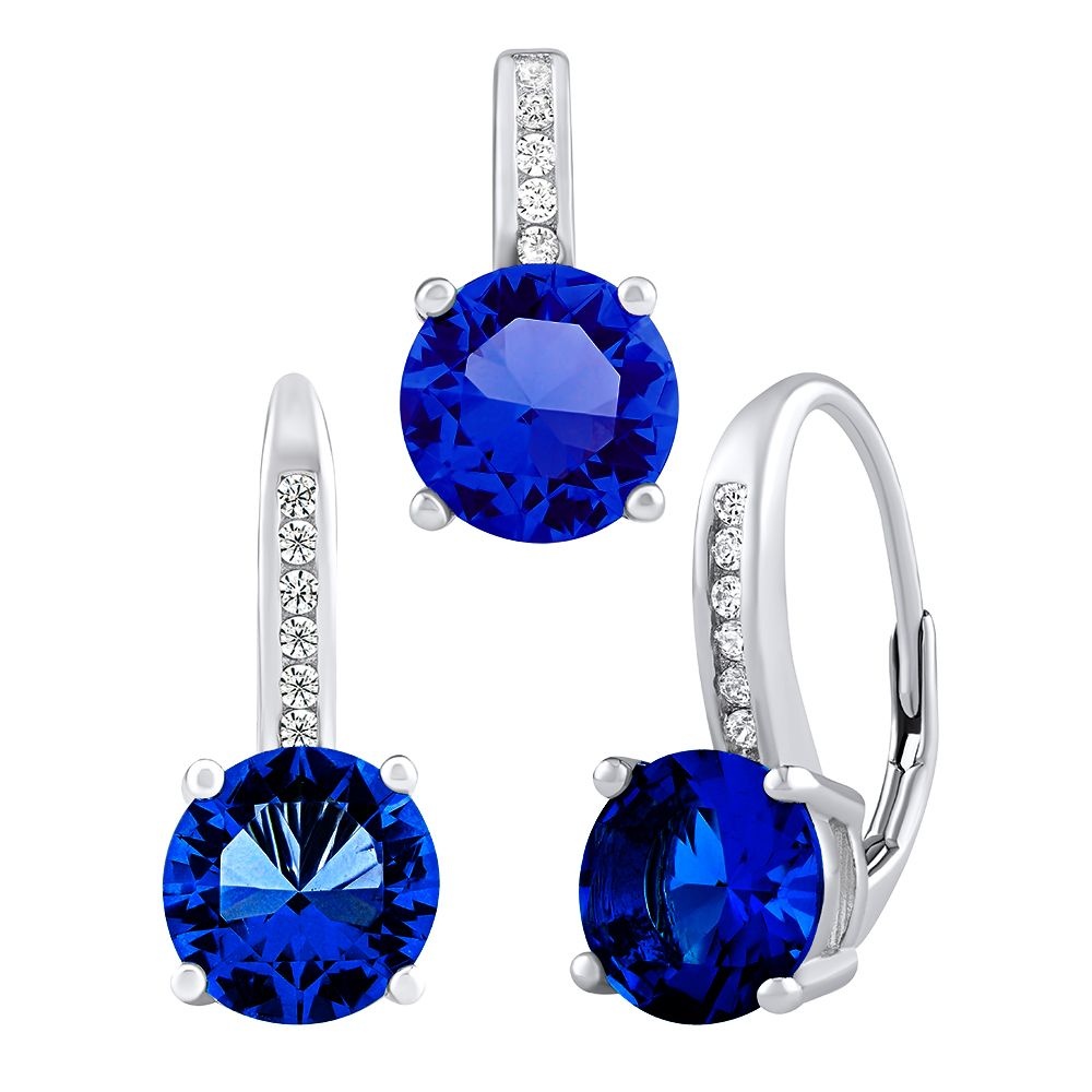 Stříbrná souprava šperků VERITY náušnice a přívěsek se syntetickým safírem.