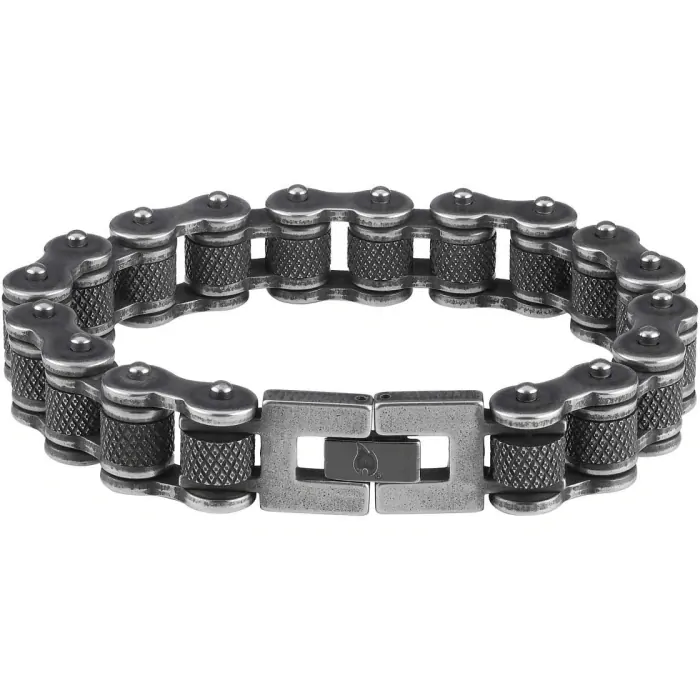 Náramek 45094 Zippo Bike Chain je vyroben ze stařené nerezové oceli a vyznačuje se designem vycházejícím z motorkového řetězu. Spona je zdobena originálním plamenem Zippo na vnější straně a logem Zippo na straně vnitřní.