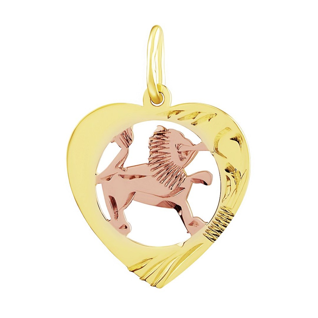 Zlatý přívěsek ze žlutého a růžového zlata znamení zvěrokruhu Lev ve tvaru srdce - ručně rytý.